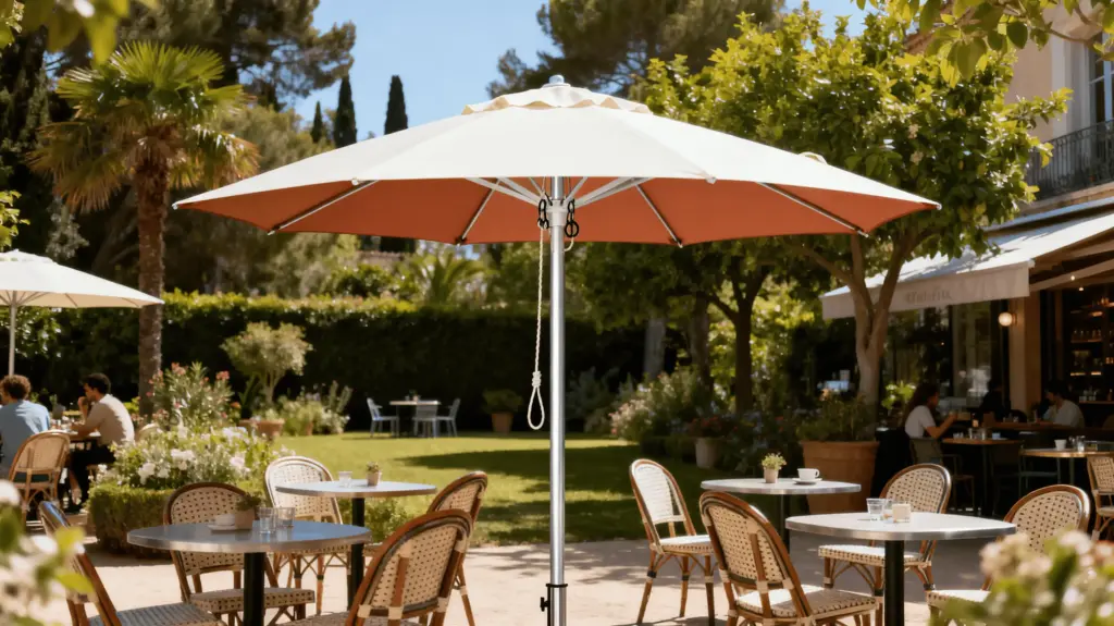 Facile et rapide – Le Primus séduit par son montage immédiat et par sa simple technique d’ouverture avec poulies. Ce parasol est idéal pour tous types d’événements. Il est un allié incontournable tant pour les particuliers que pour les professionnels de l’hôtellerie restauration. Ses systèmes de démontage et d’installation rapides et faciles, permettent de le déplacer à tout moment. Chez soi, le Primus est un atout indéniable pour profi ter de sa terrasse. Il vous suivra comme votre ombre lorsqu’un jour d’été vous chercherez un autre endroit agréable dans votre jardin.